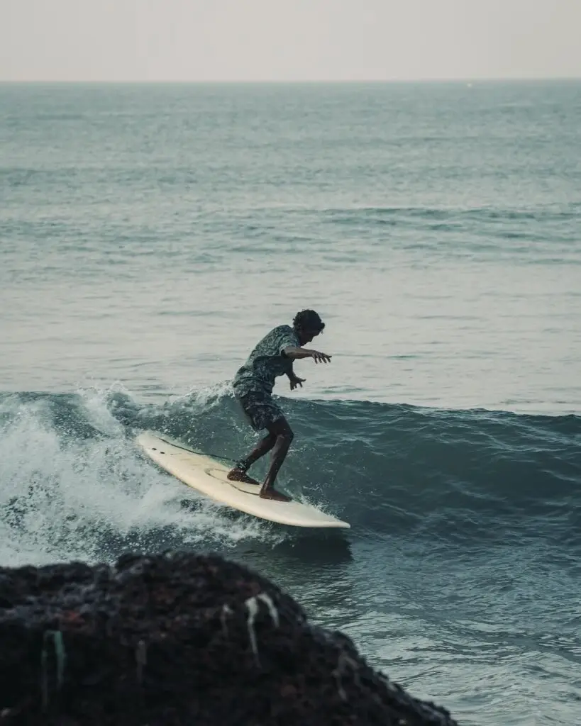 Surfing in Varkala isn’t just about catching waves — it’s about soaking in the rhythm of the Arabian Sea, the golden glow of cliffside sunsets, and the laid-back energy that pulses through this sacred coastal town.